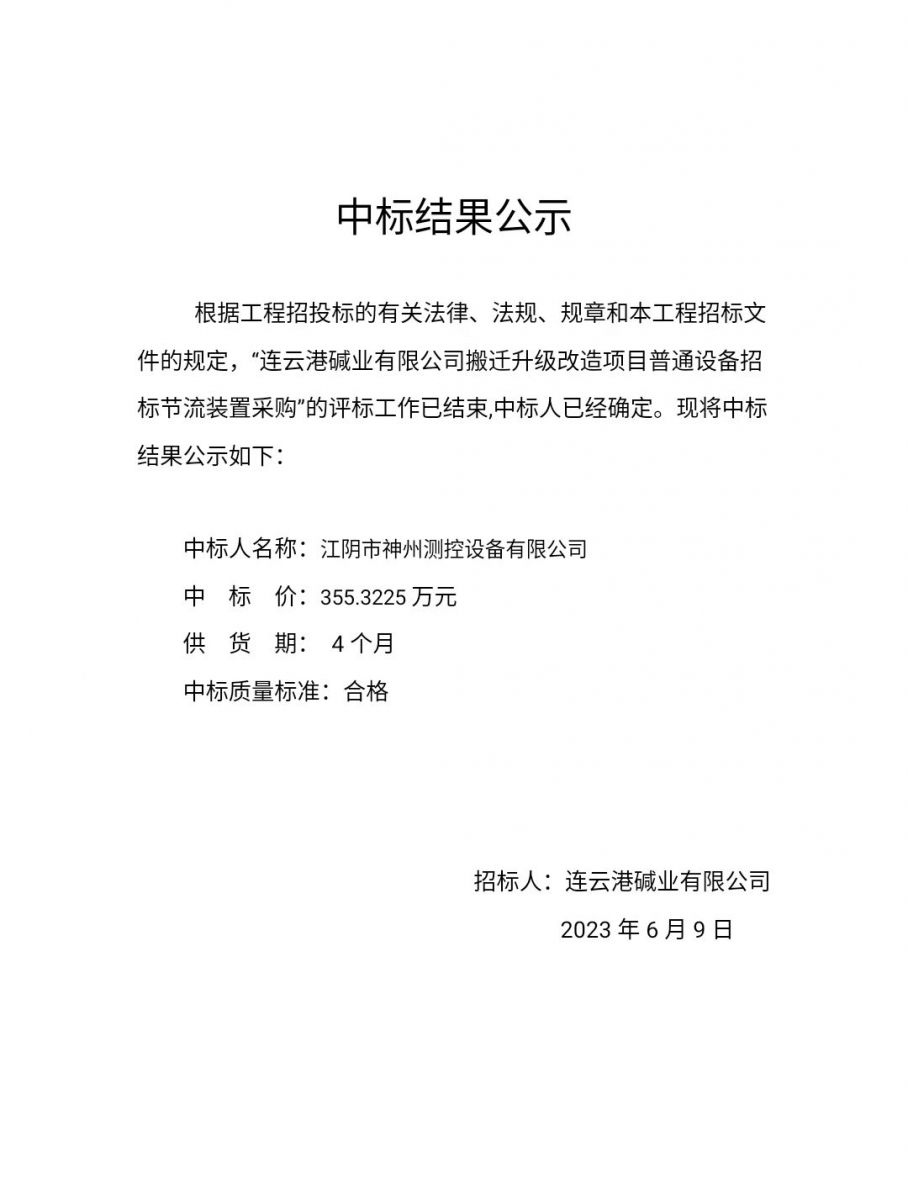 節流裝置采購中標公示