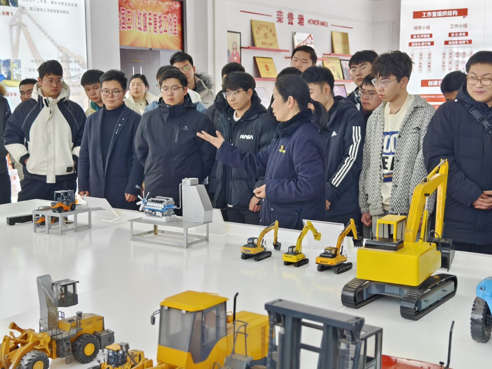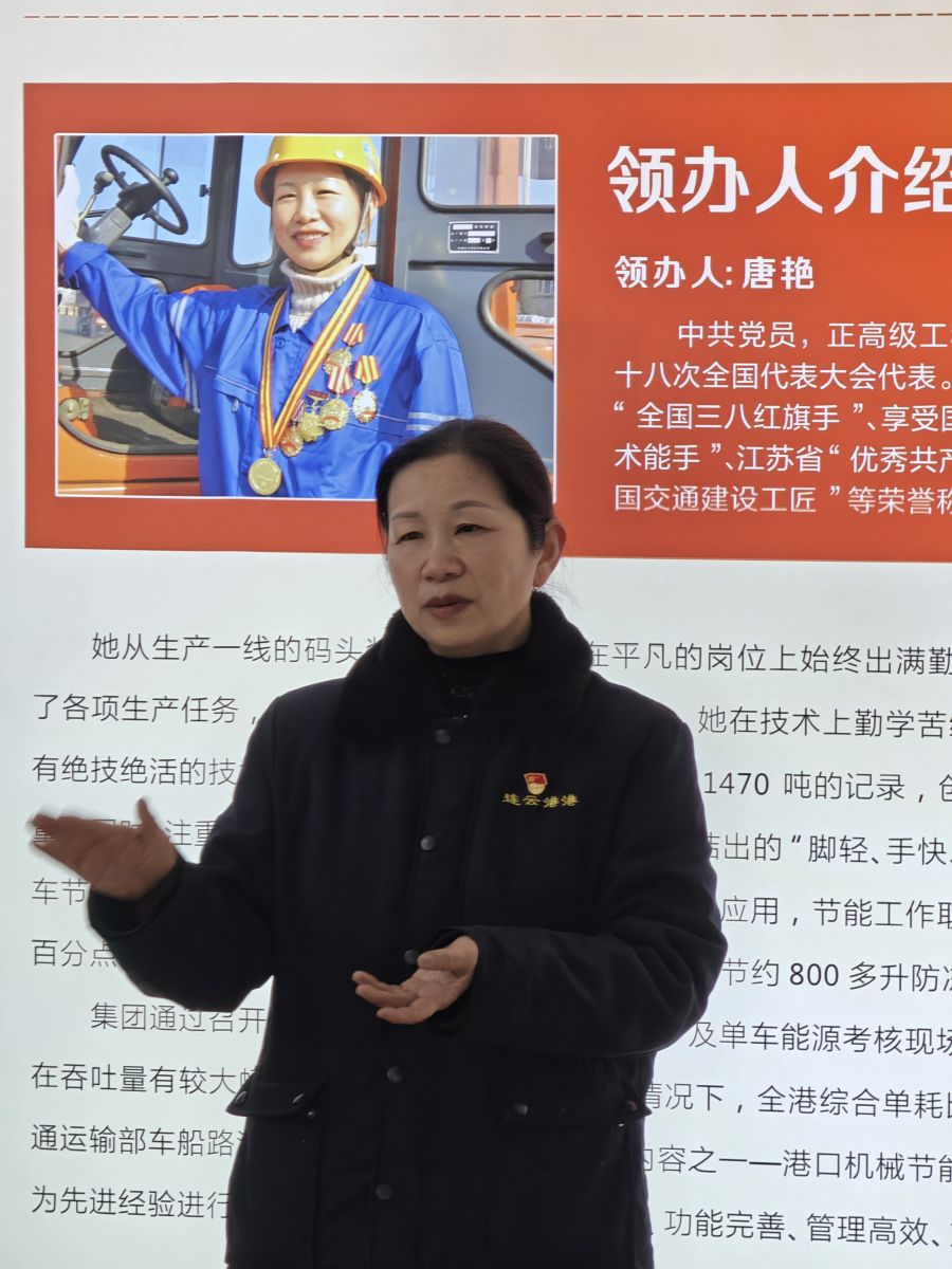 活動第一站,大家乘車前往連云港港口集團有限公司,參觀全國勞模唐艷工作室。現(xiàn)場,勞模唐艷為青年職工們介紹了工作室的情況,講述了自己珍貴的人生經(jīng)歷。唐艷鼓勵大家要樂于奉獻、敢于創(chuàng)新,在平凡的崗位上一步一個腳印,才能創(chuàng)造不平凡的業(yè)績。她的話就像是冬日里的一抹暖陽,為青年職工們的內(nèi)心點燃動力的火焰。