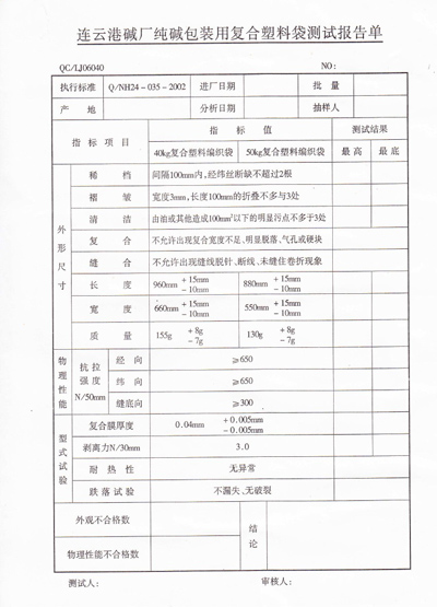 5.6 其他主要資格要求:具有合法有效的生產(chǎn)許可資質(zhì),企業(yè)制度完善、質(zhì)量管理規(guī)范,具有完整的拉絲、織布、縫紉、檢測等生產(chǎn)線,注冊資金不少于500萬元(人民幣)。食品包裝袋投標(biāo)人應(yīng)具備食用包裝物生產(chǎn)許可資質(zhì),并提供第三方檢測報告。投標(biāo)人必須送樣品袋先經(jīng)我公司質(zhì)檢部門檢測合格(2018年10月20日之前送到連云港堿業(yè)有限公司供應(yīng)部,原招標(biāo)人供應(yīng)商不需送樣品袋)。符合法律、法規(guī)規(guī)定的其他條件。